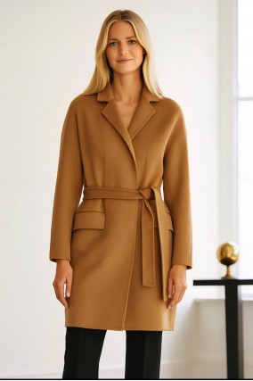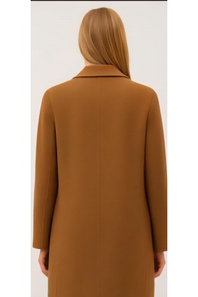 Abrigo DENNY ROSE marrón camel confeccionado en paño,corte regular, cuello con solapa , manga larga, cierre delantero con botones tipo check interiores, cintura con pasantes y cinturón al tono, bolsillos delanteros, logo DR metálico en el lateral festonenado.521ND35009