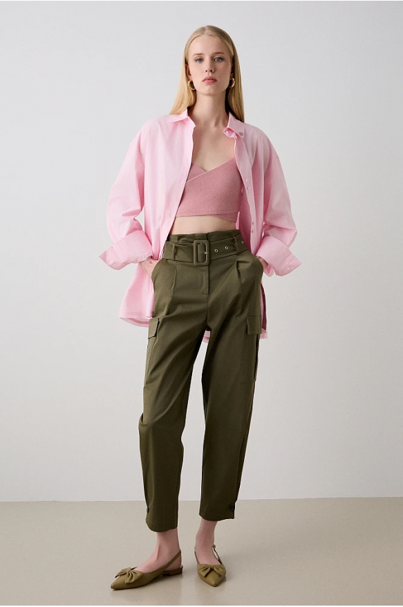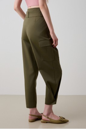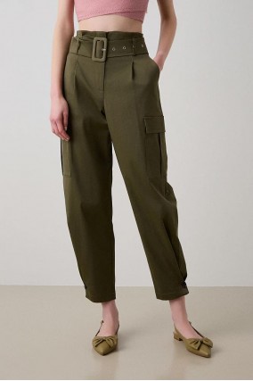 Pantalones BSB FASHION verde caqui confecionados en tejido de poliester, tiro alto, cinturón incorporado, bolsillos frances.053-212021