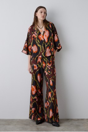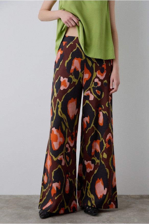 Pantalón BSB estampado con bolsillos laterales y cintura elástica, cierre con cremallera lateral, diseño recto.