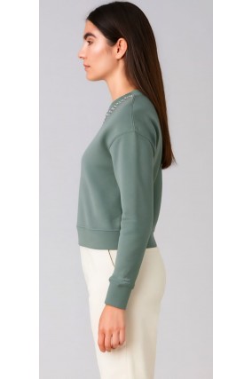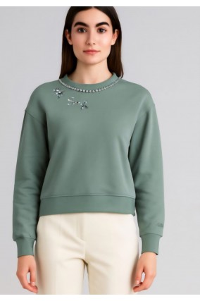 Sudadera MARKUP verde confeccionada en corte regular, cuello redondo y manga larga,parte delantera con strass incrustados como elemento decorativo.MW9620010