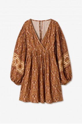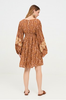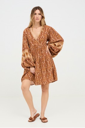 Vestido NEKANE NKN estampado con mangas abullonadas y escote en pico, vestido corto con detalle de abalorios bordados.